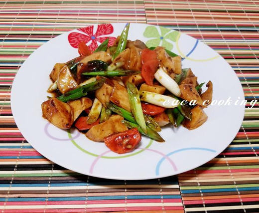 主料:杏鲍菇200g、红萝卜1/3条、蒜头2颗、青葱3支