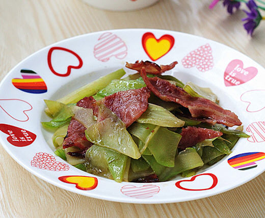 莴笋通常被拿来做凉拌菜做,其实把莴笋热炒也很好吃的,今天我们用培根和莴笋一起炒给大家吃。