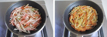 1、土豆丝多冲洗几次能去除所含淀粉,让饼更酥脆;