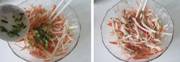 2、加入适量的面粉增加饼的粘性,无须加入水,盐腌制过后会出些汁,足够了;如果加多水加多面粉的话,那么煎出来的饼就没有那么酥脆了;