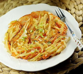 这款胡萝卜土豆丝煎饼所用材料简单、制作也很简单,无须三分钟就可以出锅,即是很适合小朋友和老人家的健康零食,也可以作为全家人的早餐。煎好的胡萝卜土豆饼色泽艳丽,酥酥的、脆脆的,丝丝分明,吃到口里太美味了。这何况很多孩子们对胡萝卜不理睬,这样的做法让小朋友不知不觉就美美地吃下去了 ,非常有成就感吧。土豆又多了一种新吃法,你一定要尝试一下哟。