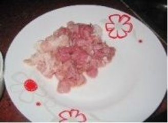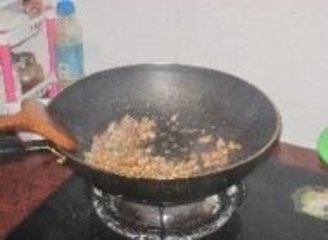 3.锅内倒入油热后放肉丁去翻炒,中途加少许生抽。
