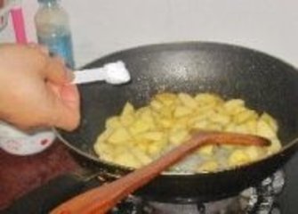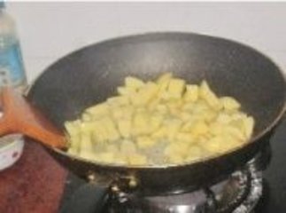 5.锅内再放多一点点油倒入土豆块煎炒。