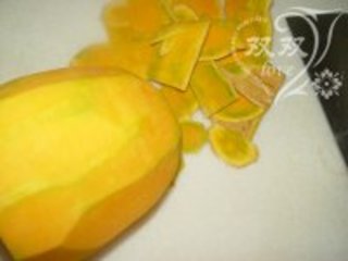 3.南瓜去皮、去种子,切成块。
