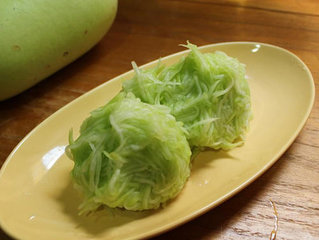 2、瓜肉加入1小匙盐(材料外)抓匀,去除多余水份去青;再冲水去除多余盐份捏干备用。