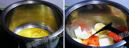 2、黄油不能少。加了黄油才能做出那种香味来(当然为您的健康着想,也可以用植物油,我婆婆煮玉米浓汤就都是用的橄榄油)
