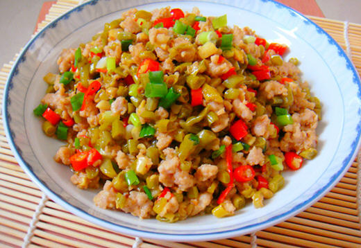 今天这款酸豆角烧肉末制作前最好把酸豆角浸泡一下,去除咸味,这样炒出来会更加好吃。