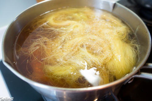 2、取一锅水,约1500cc,带水滚后放入玉米须,煮沸后再以小火续煮5至10分。