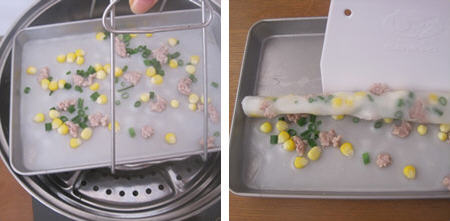 12、放上烧开的蒸锅上,盖上锅盖,大火蒸2分钟至熟。