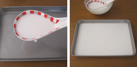 10、拿起蒸盘轻轻把粉浆晃均匀。