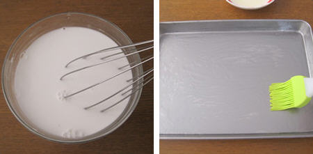 2、刷蒸盘只需要薄薄一层的油,油太多的话粉浆不好晃平均匀。