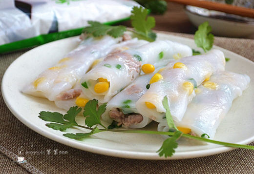 肠粉是广东人最常见的早餐 之一。无论是街头巷尾的早点档口,还是高档的酒店食肆,都可以点到一份爽滑美味的肠粉。肠粉可以随心搭配上自己喜欢的各式食材,淋上酱汁,就是一份美味的早餐。从小到大,肠粉吃过不少,但自己动手做肠粉还是第一次。这次用的是白鲨牌肠粉专用粉,就是新手也能做出爽滑可口的肠粉,让你成功感满满的,以后就可以在家里做好吃的肠粉了。第一次尝试,做最简单又营养的玉米瘦肉肠粉,有肉有蔬菜,吃得更健康哦。