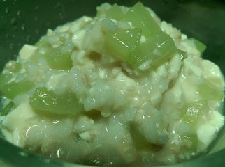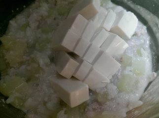 主料:大黄瓜适量,有机豆腐1/3盒,猪绞肉适量
