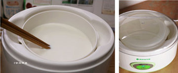 3、用消毒过的筷子搅拌均匀原料,遮上盖子,插上电源,6小时后酸奶就自动做好了。