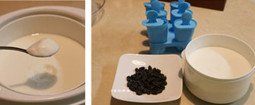 4、酸奶做好后放在常温下冷却,同时备好葡萄干、雪糕棒模具。