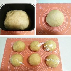 3、15分钟后将面团分出6个小面团,揉圆至表面光滑后盖上保鲜膜静置10分钟。