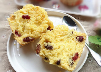 配料:细砂糖50克,盐1小撮,泡打粉5克,葡萄干适量