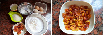 2、杏脯切碎,加入朗姆酒浸泡至软身。