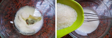 3、把酸奶与玉米油倒入盆中,拌匀至完全融合。