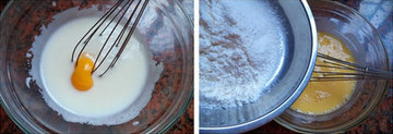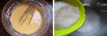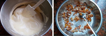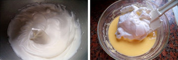 10、舀一半蛋白泡拌入蛋黄中,拌匀。