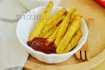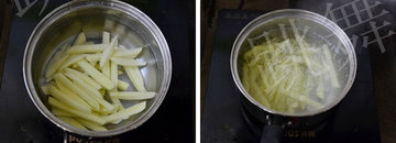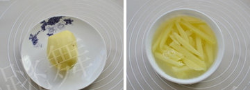 5、将裹上黄油的土豆条放入粉中薄薄的沾一层。