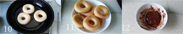 10、二次发酵完成,平底锅烧热放入色拉油,油热放入甜甜圈生胚,炸至以免金黄后翻面。