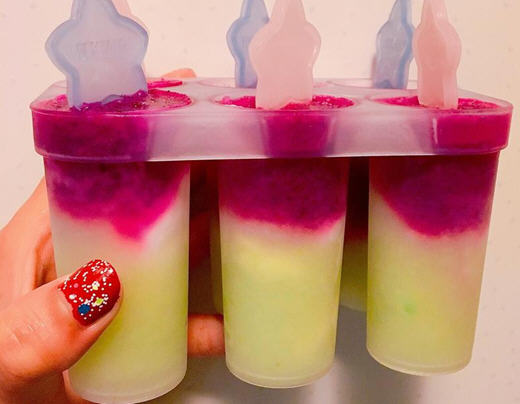 2、在依序加入 火龙果泥👉优格(依个人口味)👉芭乐泥 在冷冻库冰冻至隔天就完成,食材、食材顺序都可以依自己口味换唷~ 如果想要吃水果也可以切薄片放进去。