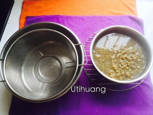 1、材料A煮好绿豆汤稍放凉过滤,汤汁和豆分离,绿豆入果汁机或食物调理家打至泥. (果汁机若打不到需加一些汤汁,尽量避免加太多稍后收干较快)。