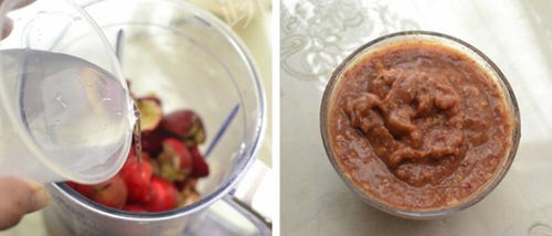 2、然后用料理机加入纯净水打成果泥(可以留颗粒状,这样做好的酱口感更好)。