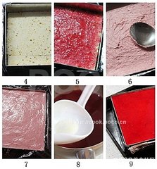 30、立即倒入模具中树莓奶油上层,入冰箱冷藏过夜。