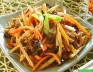 下面就是这道家常下饭菜--牛蒡肉丝的成品图: