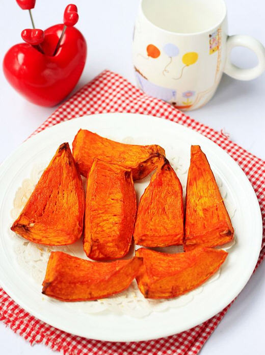 1、南瓜条要切的大小均匀,这样烤的熟透一样。