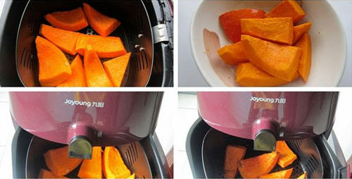 2、把南瓜条加炸篮里,推进炸篮,把空气炸锅通电,设置180度,时间20分钟。