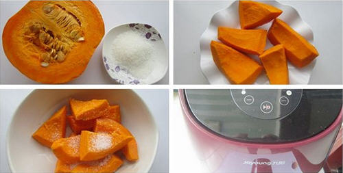 1、把南瓜洗净去籽去瓤切条,加白糖,拌均匀腌制10分钟左右。