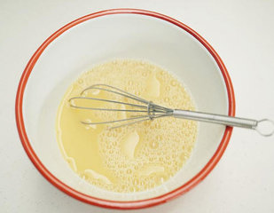 1、将蛋液、水、香菇水、柴鱼酱油搅拌均匀。