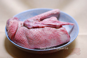 2、鹅一块、一边或一只随意,洗净后用酒和盐腌片刻。