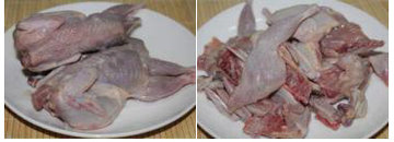 1、将买回来的鹌鹑再去下小毛,去头去屁股去内脏,洗净后切成大小合适的块;