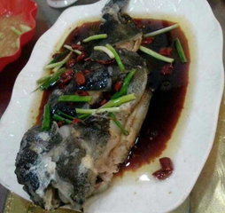7、再次做的蒸食:将鱼两侧分别涂上一层盐一层糖一层花生油,放上少于花椒,葱段,上锅蒸12~15分钟,这次效果好。