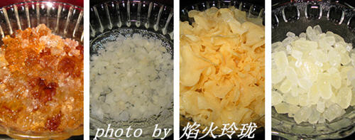 1、桃胶提前8-10小时浸泡,期间换水2-3次,挑去杂质沥干水分备用。