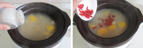 3、待汤快煮好加入盐和胡椒粉调味,放入枸杞进去一起煮上五分钟即可。