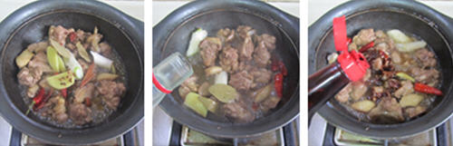 配料:干辣椒、冰糖、香叶、八角、桂皮、白酒、老抽、生抽、油、盐