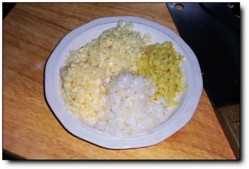4、姜、蒜、苹果、梨剁末儿,苹果、梨用1/3或者一半即可。