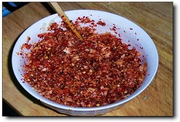 2. 辣椒粉最好用韩国产,中国产的磨碎辣椒时不除籽,相当便宜但不好;