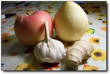 3、准备好:姜、大蒜、苹果、梨。