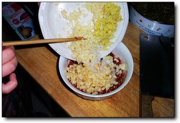 5、辣椒面、盐、味精。辣椒面的量看自己喜欢辣味的多少,也要看辣椒面的新鲜程度,最好再来一点小香葱。
