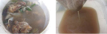 2、捞干净表层油脂,用纱布过滤汤渣或者用一个油水分离器滤过汤渣和牛油,只留清汤,用鱼露调咸味,稍微加点白糖或者冰糖提味。