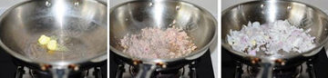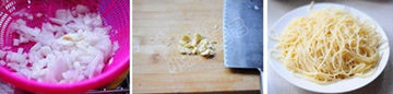 12、用锅内余油煸炒洋葱和蒜末,炒至洋葱有点变透明。