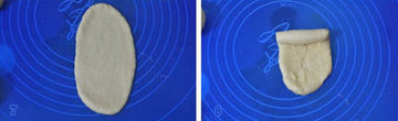 7、 取一个小面团用擀面棍擀成椭圆形。