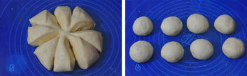 5、 将面团按扁,分割成8等份。