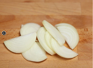 1.红萝卜切成约2英寸长的条,洋葱切丝。